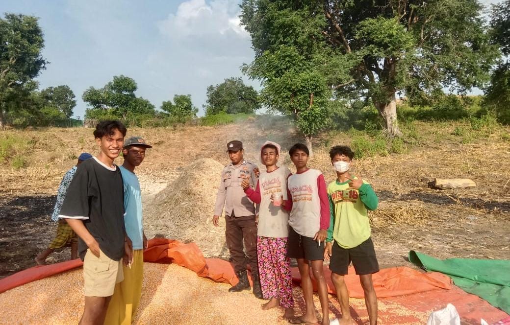 Pada Rabu 30 April 2025 siang kemarin Bripka Sukarna Bhabinkamtibmas Polsek Soromandi membantu proses penjemuran jagung warga binaan di Desa Sampungu Kecamatan Soromandi.