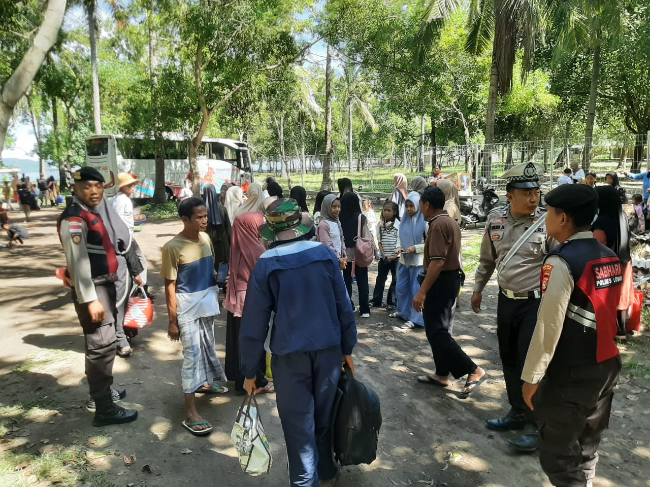 Sejak pukul 15:35 WITA hingga selesai, empat personel Polsek Sekotong sigap memantau aktivitas di area pesisir pantai.