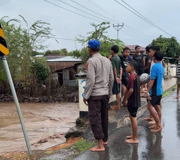 Intensitas hujan sudah mulai reda dan banjir berangsur angsur surut, situasi Kamtibmas di wilayah hukum Polsek Soromandi dalam keadaan Kondusif.