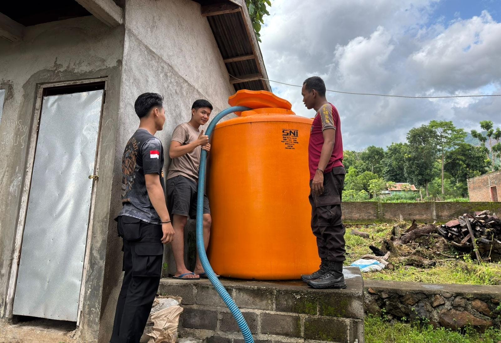 Respon Cepat unit Rantis Satsamapta Polres Bima Polda NTB menyalurkan bantuan 5000 liter air bersih yang peruntukan bagi Gereja Santo Yohanes Maria Vianei di Kecamatan Donggo.