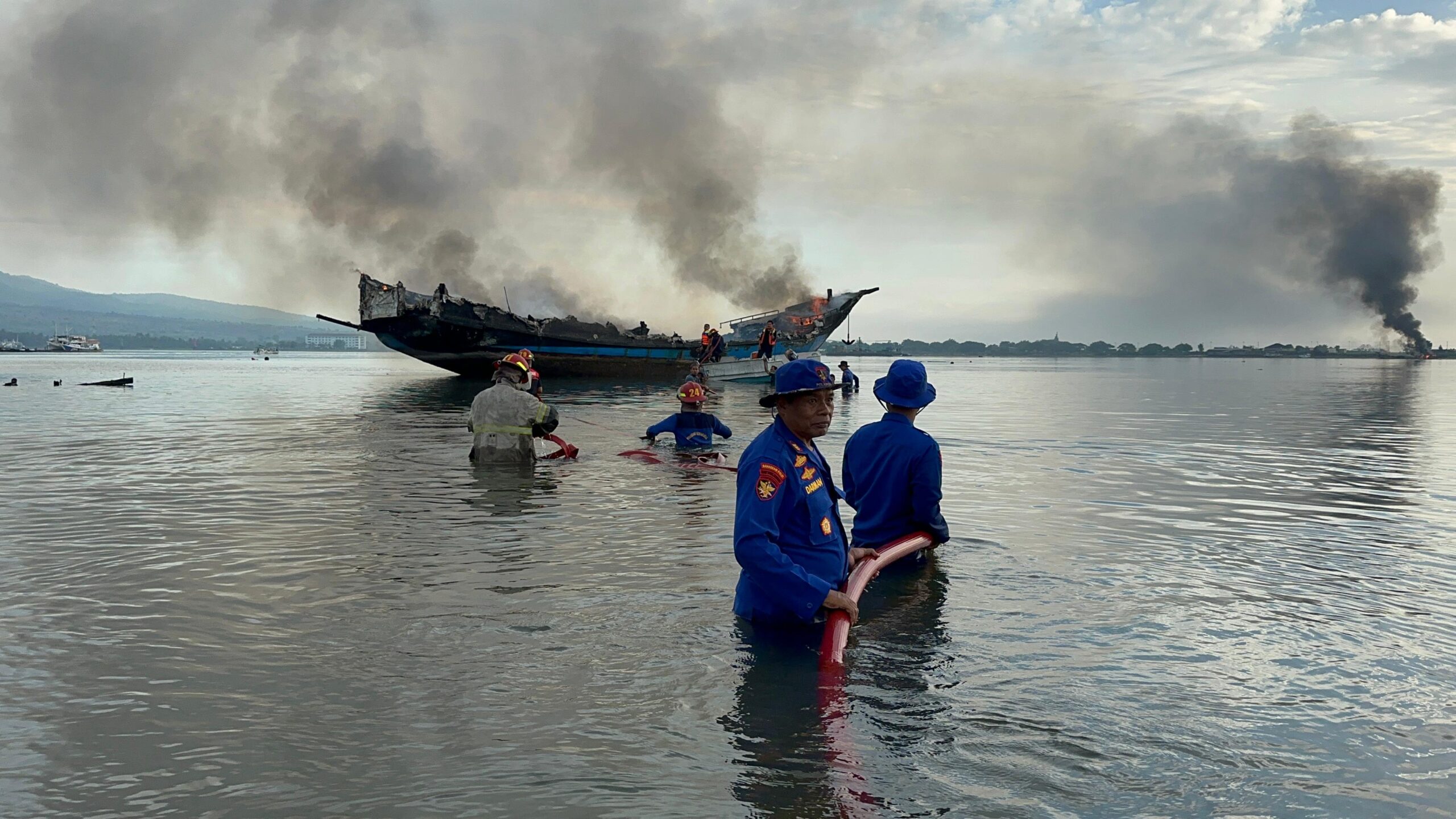 “Mereka sudah berusaha memadamkan api dengan alat seadanya, tetapi api semakin membesar. Akhirnya, kapal terbawa arus dan menabrak dua kapal lain yang juga ikut terbakar,” jelas Kombes Pol. Mohammad Kholid.