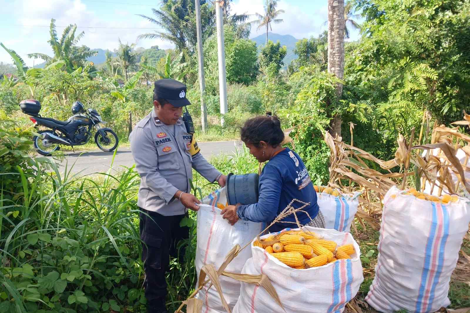 Personel Polsek Gerung terjun langsung ke Dusun Gumesa Tengah, Desa Giri Tembesi, Kecamatan Gerung, untuk melaksanakan pendampingan kegiatan panen jagung milik salah seorang petani setempat, Bapak Nyoman Sarde, Senin (2/6/2025).