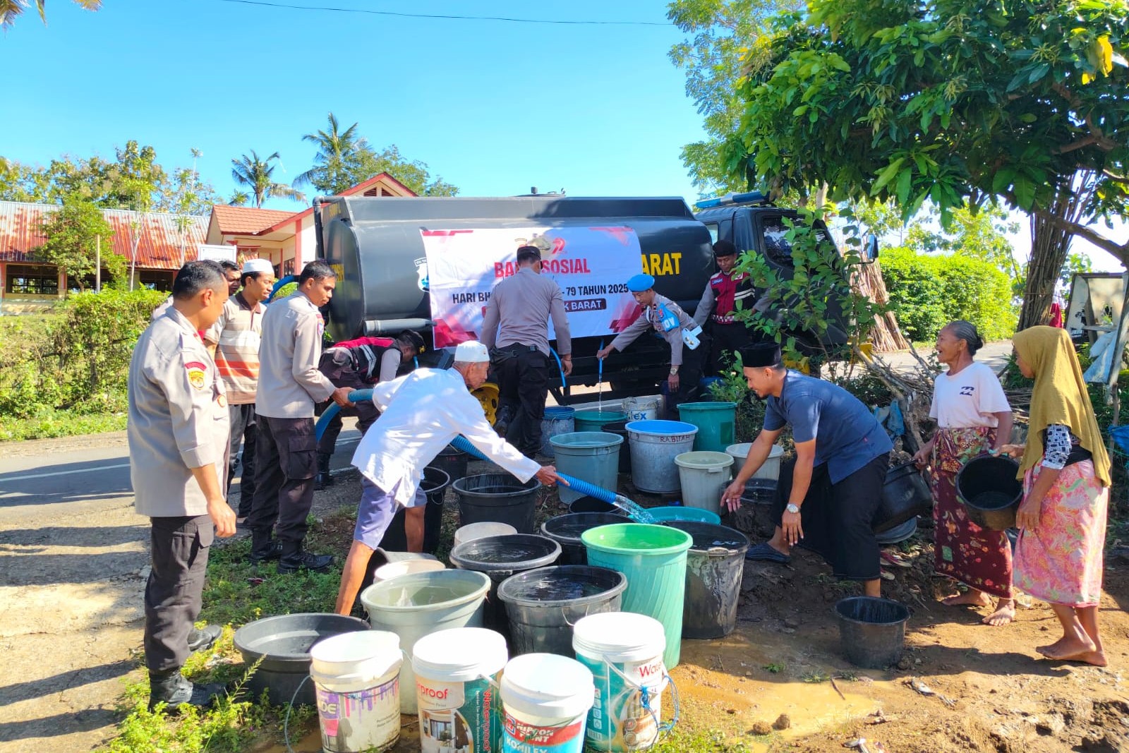 Sebanyak 5.000 liter air bersih disalurkan dalam kegiatan bakti sosial, Rabu (18/6/2025), sebagai bagian dari rangkaian peringatan Hari Bhayangkara Ke-79 Tahun 2025.