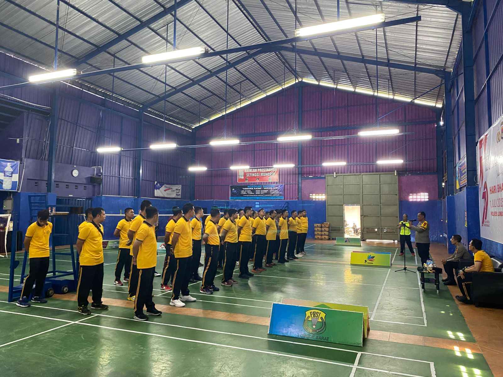 LOMBOK BARAT – Semangat kebersamaan dan sportivitas membara di lingkungan Polres Lombok Barat. Dalam rangka memeriahkan Hari Bhayangkara ke-79, Polres Lombok Barat menggelar turnamen bulutangkis antar Satuan Kerja (Satker) yang dibuka secara resmi pada Rabu, 18 Juni 2025. Acara pembukaan yang berlangsung di GOR PB Sarana Desa Kediri, Kecamatan Kediri, Kabupaten Lombok Barat, ini dihadiri oleh sejumlah pejabat utama dan seluruh peserta turnamen.