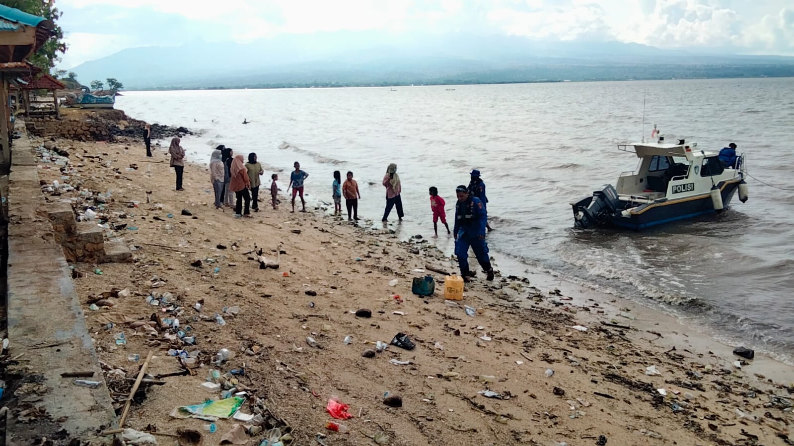 Petugas Satpolairud terlihat aktif melakukan patroli di sepanjang pantai serta memberikan imbauan kepada wisatawan agar tetap berhati-hati saat berenang dan bermain di laut.