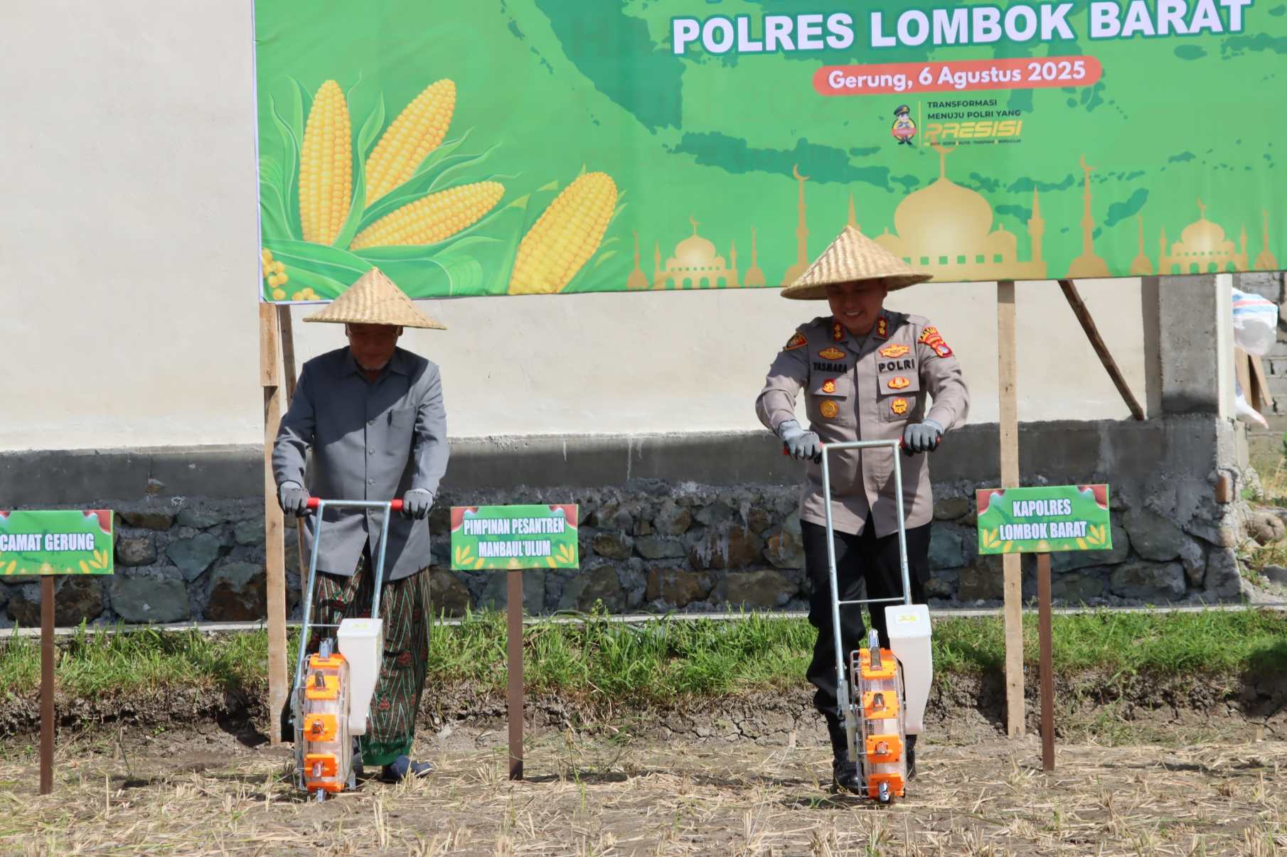 Gerung, Lombok Barat – Kepolisian Resor Lombok Barat (Polres Lombok Barat) bersama dengan Pondok Pesantren (Ponpes) Man’baul Ulum menggelar acara penanaman jagung serentak di lahan milik atau yang dikelola oleh Ponpes yang berlokasi di Dusun Dasan Ketujur, Desa Mesanggok, Kecamatan Gerung, Kabupaten Lombok Barat, Rabu (6/8/2025).